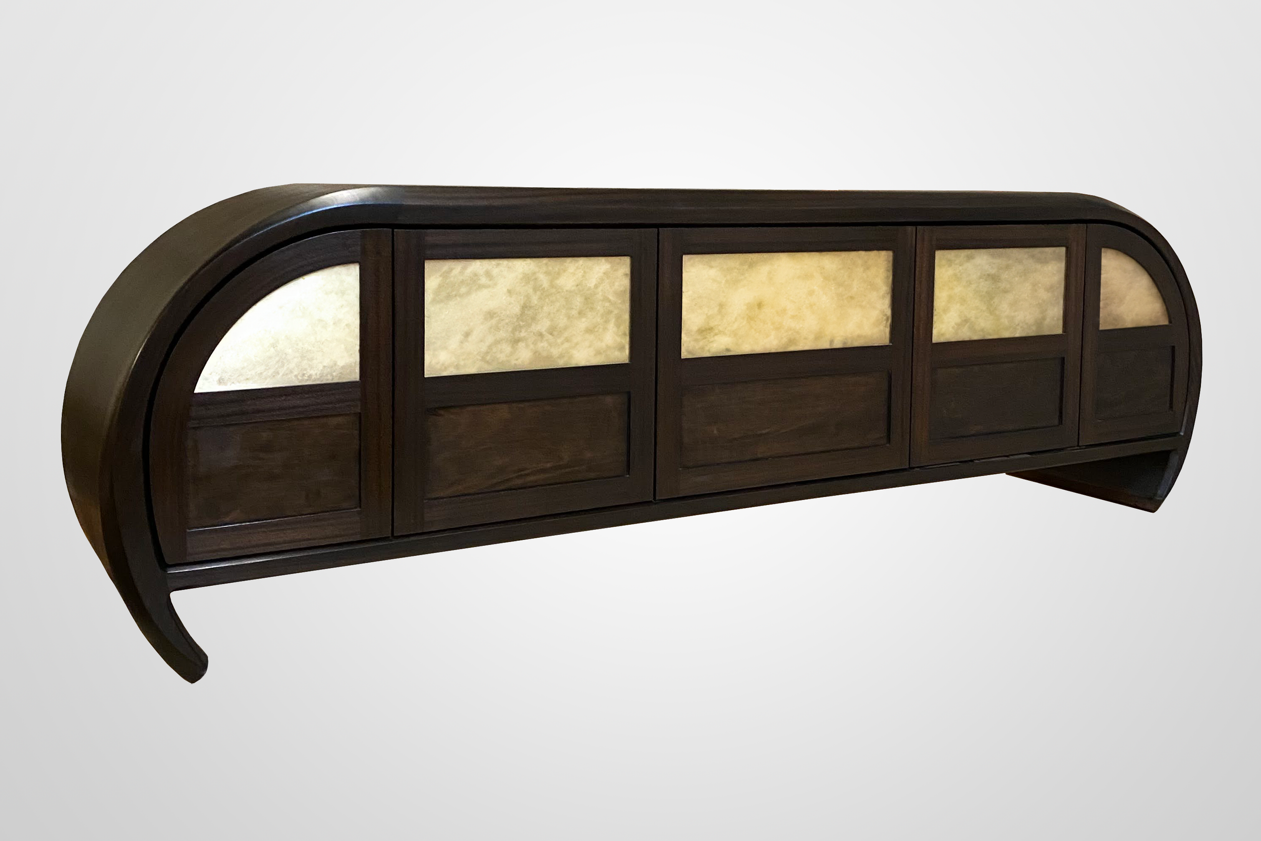 With its curved edges and lustrous brass panels, the "Hwangto" Console is a visual delight that marries contemporary design with a profound appreciation for Korean craftsmanship and history.